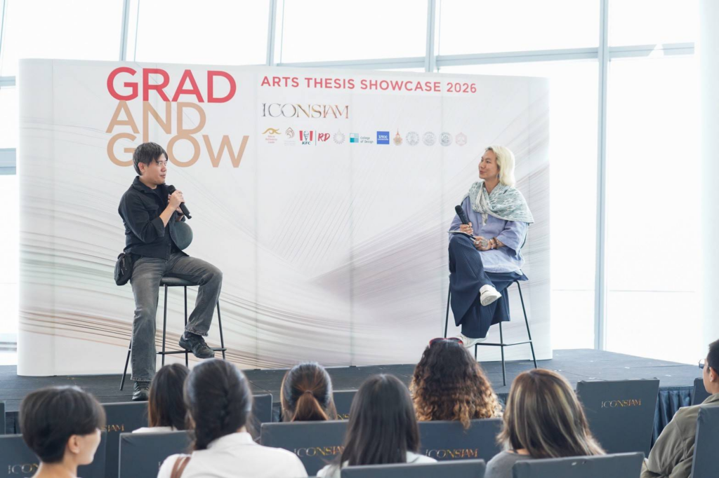 ไอคอนสยาม จึงได้ร่วมกับ กองทุนส่งเสริมศิลปะร่วมสมัย สํานักงานศิลปวัฒนธรรมร่วมสมัย (สศร.) กระทรวงวัฒนธรรม และ KFC ในเครือ RD (เรสเทอรองตส์ ดีเวลลอปเม้นท์ จำกัด) จัดงาน Grad & Glow Arts Thesis Showcase 2026 ต่อเนื่องเป็นปีที่ 2 เปิดพื้นที่ให้นักศึกษา จากมหาวิทยาลัยต่างๆ ร่วมจัดแสดงผลงานศิลปนิพนธ์ โดยปีนี้มีมหาวิทยาลัยที่เข้าร่วม ได้แก่ วิทยาลัยเพาะช่าง มหาวิทยาลัยเทคโนโลยีราชมงคลรัตนโกสินทร์ มหาวิทยาลัยศิลปากร มหาวิทยาลัยรังสิต จุฬาลงกรณ์มหาวิทยาลัย และมหาวิทยาลัยหอการค้าไทย พร้อมกันนี้ ไอคอนสยาม ได้เชิญ 7 Exclusive Speakers ได้แก่ คุณชิน ศิรชัย อรุณรักษ์ติชัย, คุณกอล์ฟ รัฐวุฒิ ชัยวงศ์ขจร, หม่อมหลวงจิราธร จิรประวัติ, คุณยูน ปัณพัท เตชเมธากุล, ครูเพียง ณัฐฐานิตา กาญจนชัยพิวัฒน์, คุณปริญญา ศิริสินสุข (Benzilla) และ POD ธนชัย อุชชิน ผู้ขับเคลื่อนโลกศิลปะร่วมสมัย ซึ่งจะมาร่วมถ่ายทอดประสบการณ์การทำงาน และสร้างแรงบันดาลใจให้กับน้องๆ นักศึกษาในการต่อยอดผลงานสู่เวทีระดับโลกต่อไป